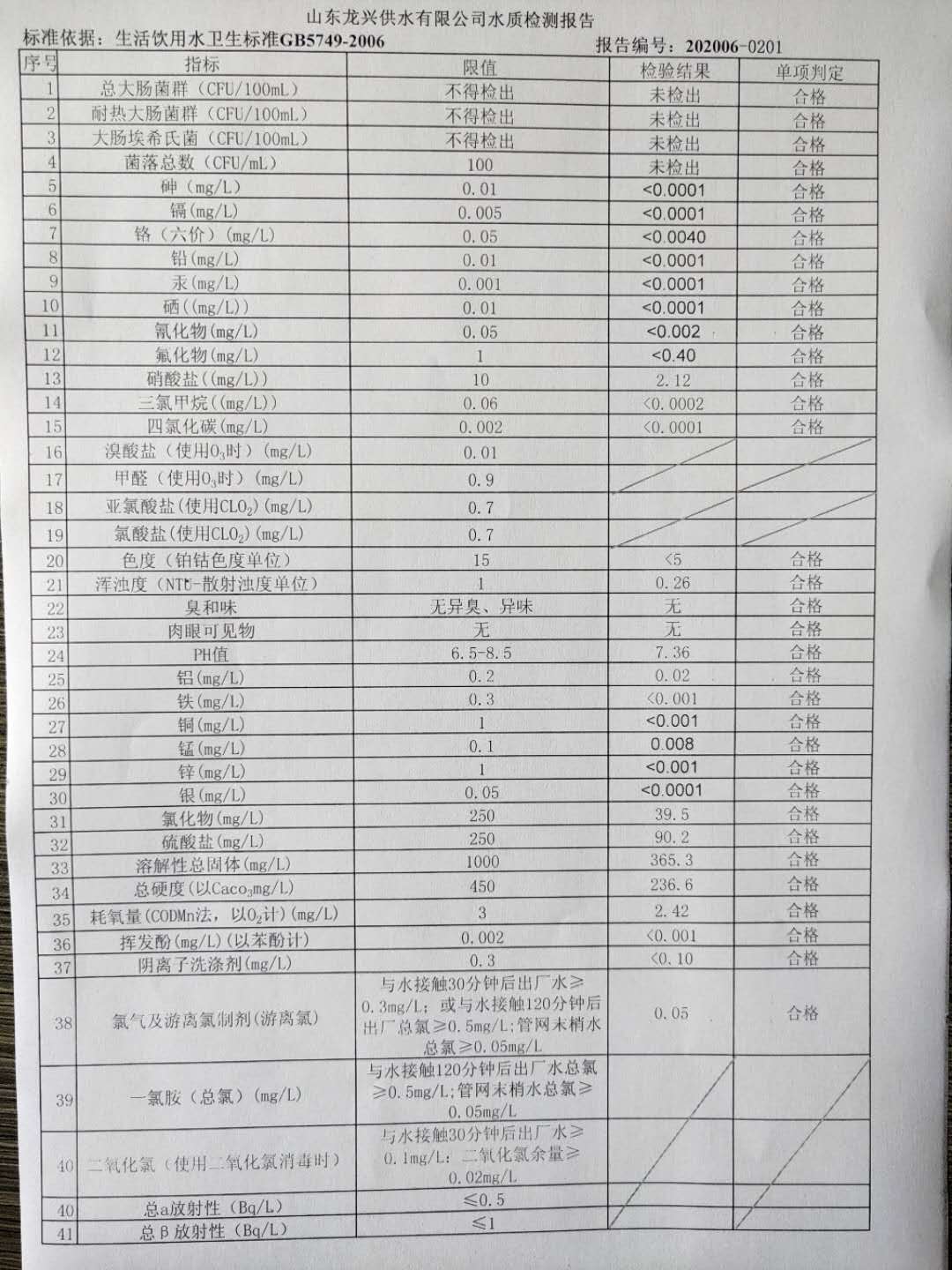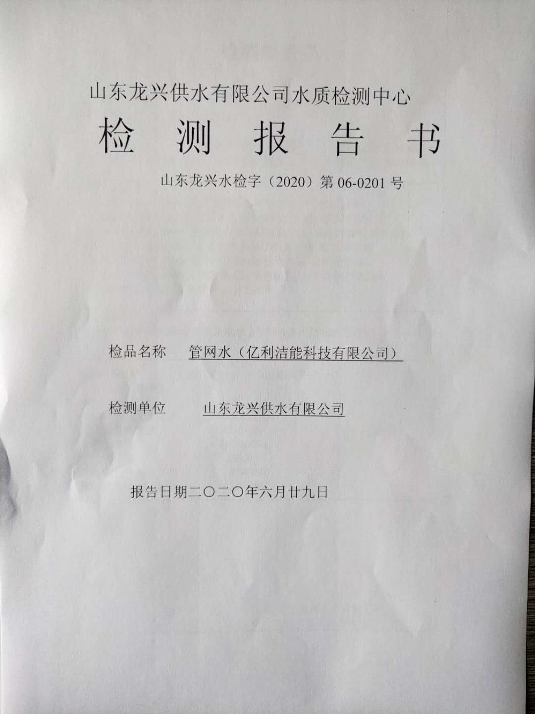 6月管網(wǎng)水月檢報告
