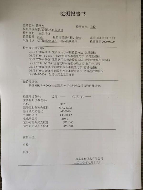7月管網(wǎng)水月檢報(bào)告