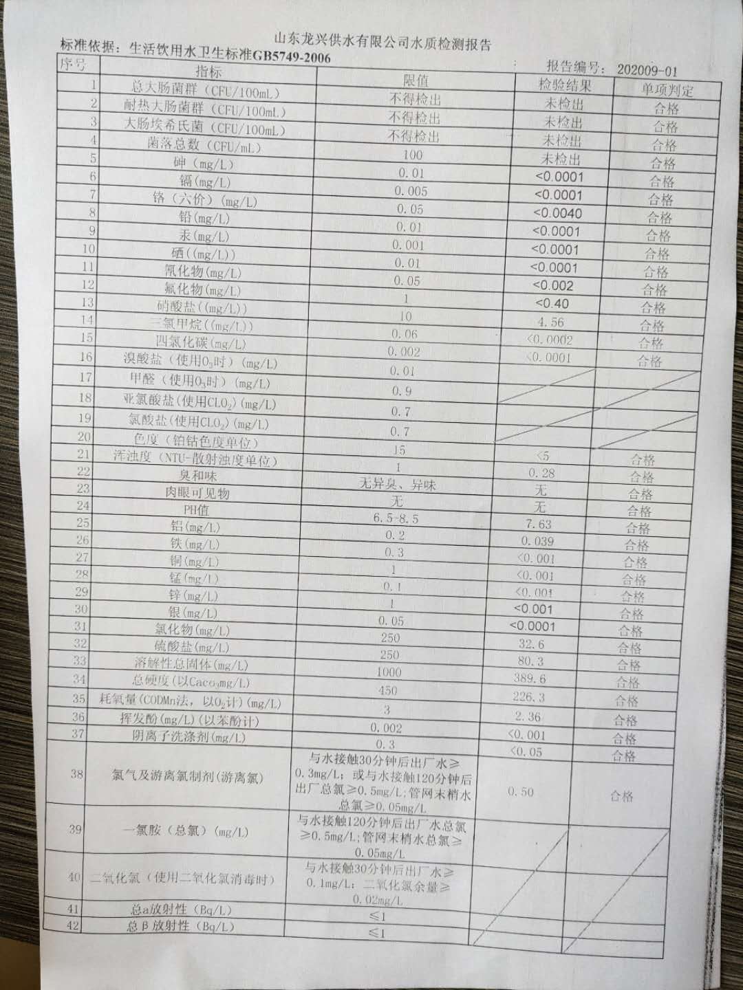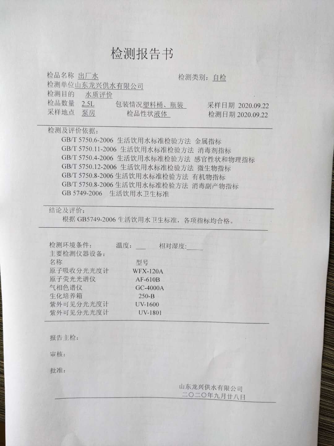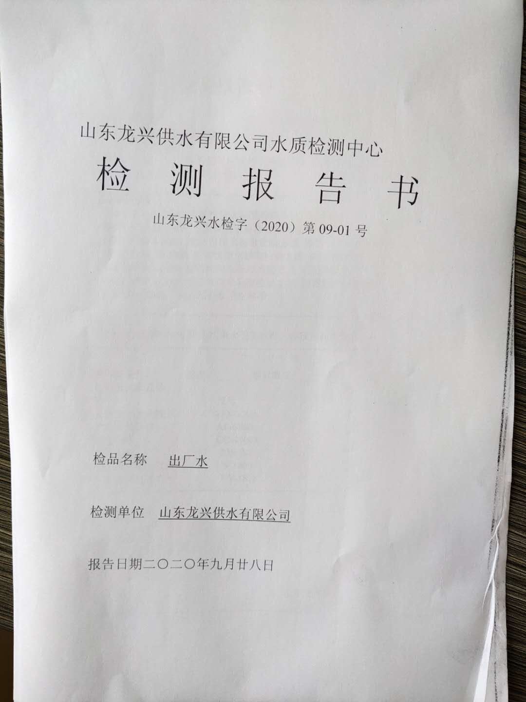 2020年9月出廠水月檢報(bào)告