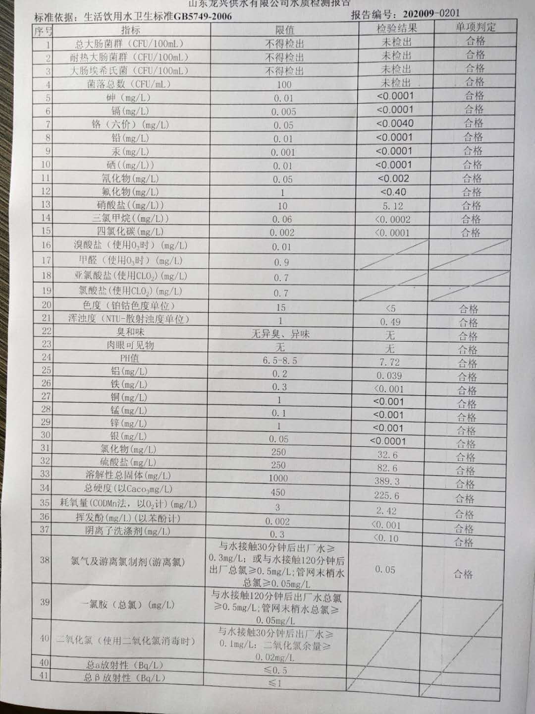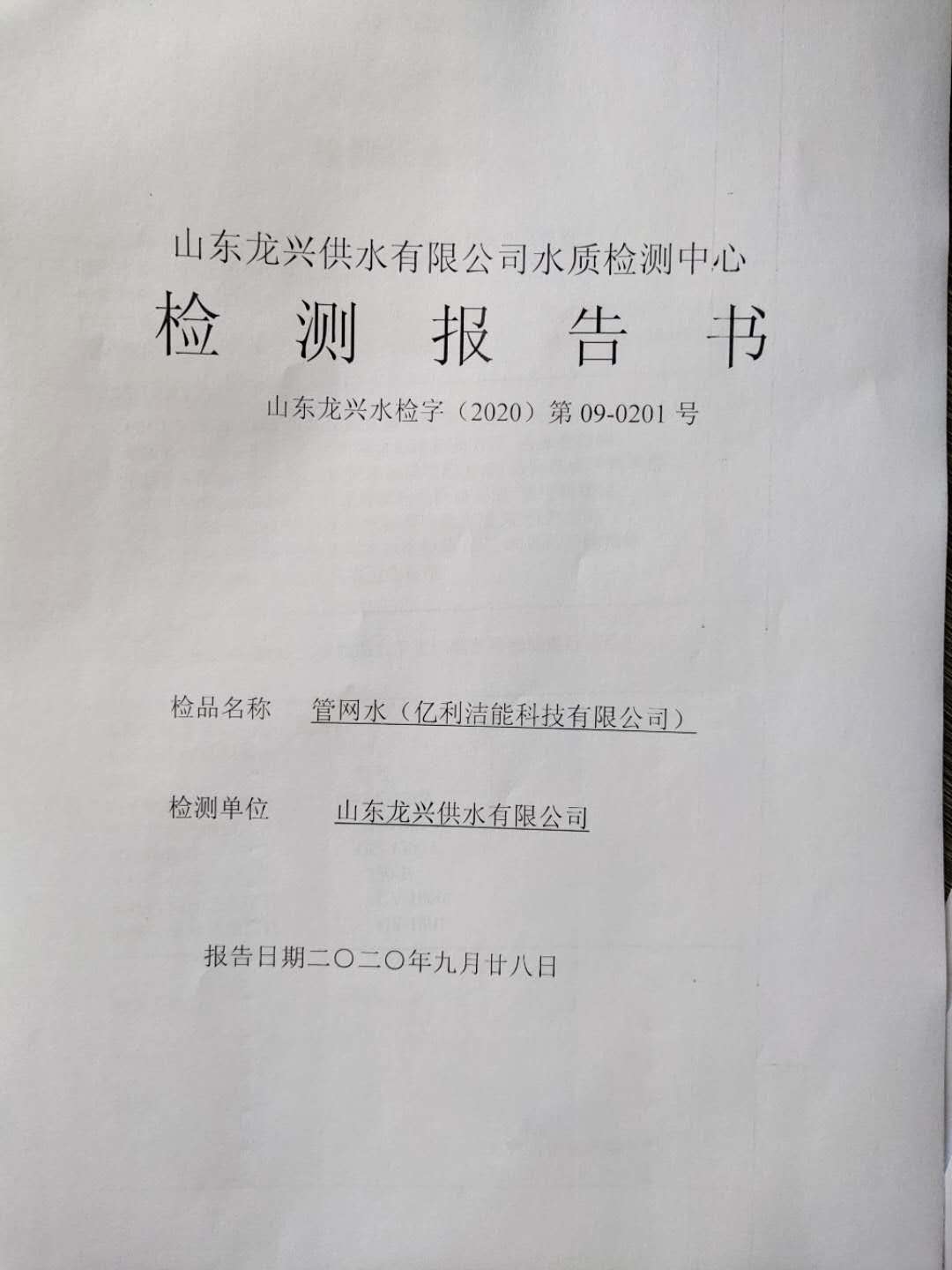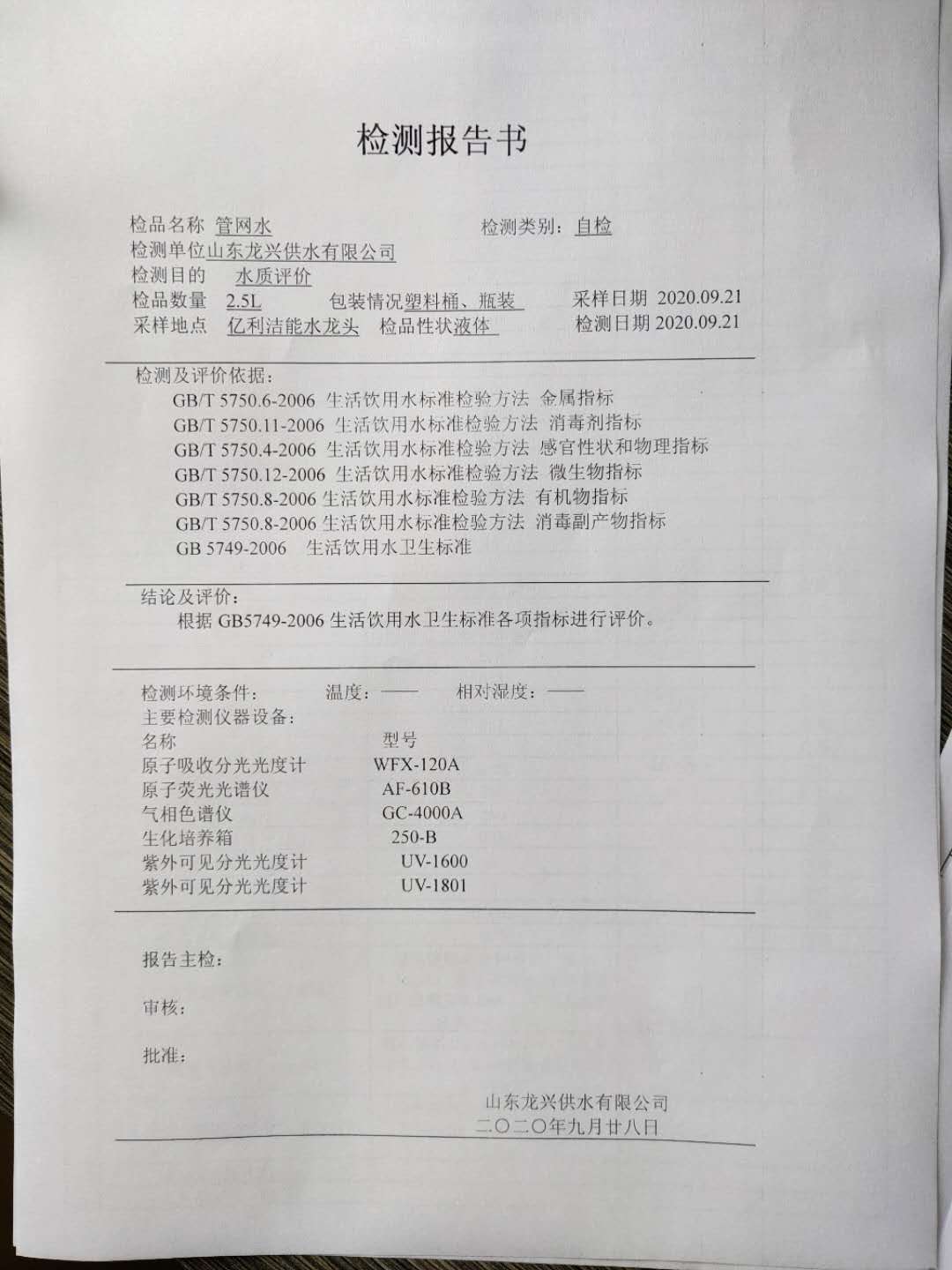 2020年9月管網水月檢報告