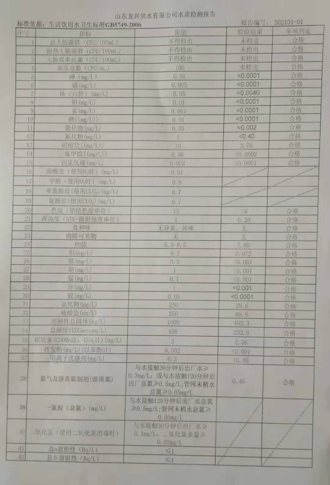 元月份出廠水月檢報告