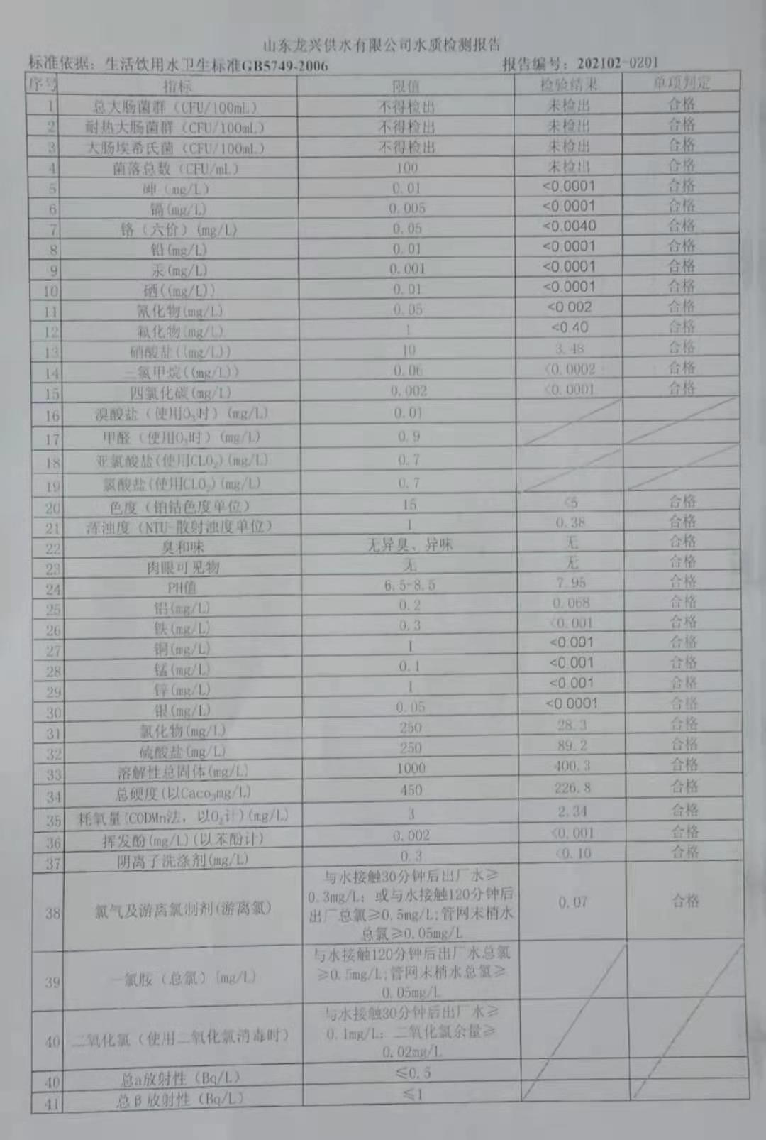 2月份管網水(億利潔能科技有限公司水龍頭)月檢報告
